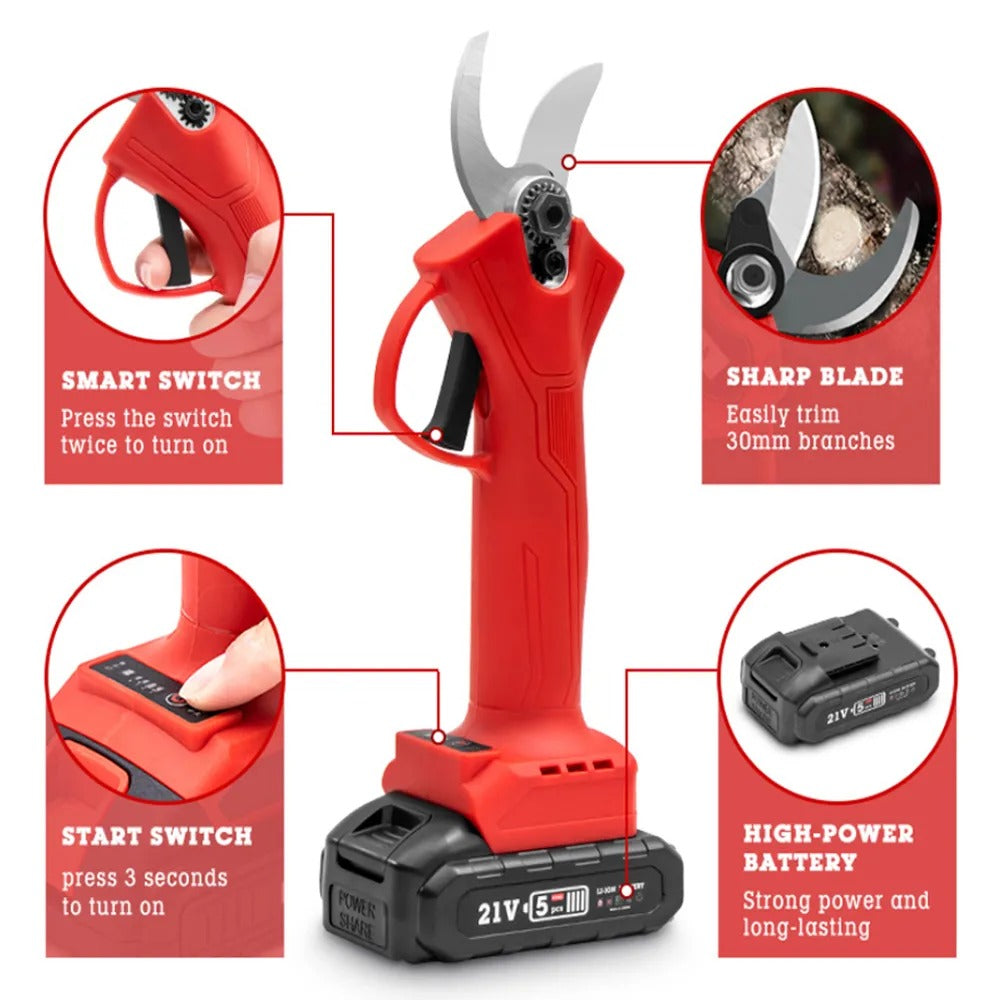 Experimenta la potencia con cada corte. Las Tijeras de Podar Eléctricas están equipadas con mangos resistentes para un control óptimo y un rendimiento inigualable. Cada vez que las uses, sentirás la confianza y la precisión que provienen de una herramienta diseñada para brindar resultados sobresalientes.